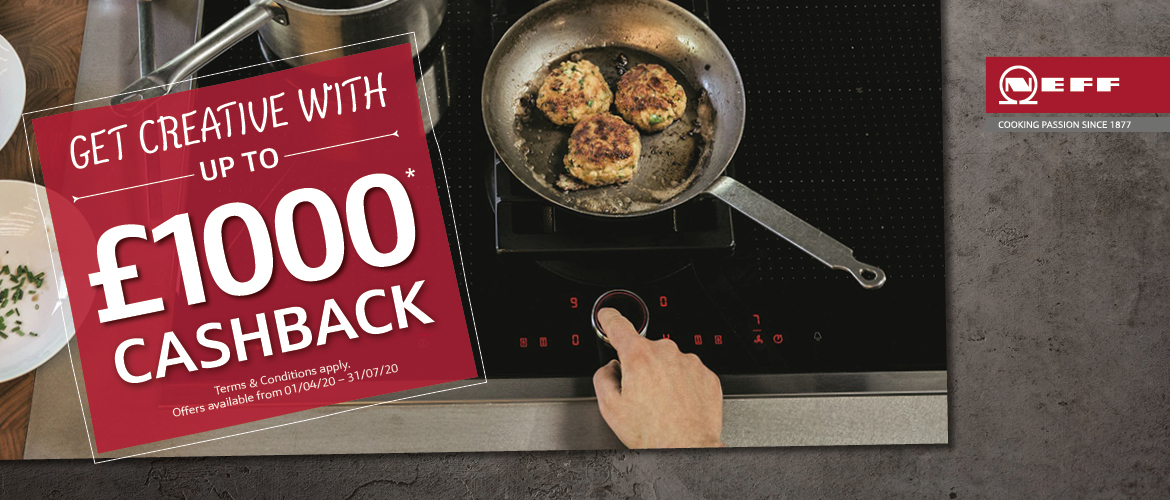 Claim up to £500 cashback when you purchase a selected NEFF oven* and four other NEFF appliances when purchased together with your brand new kitchen.